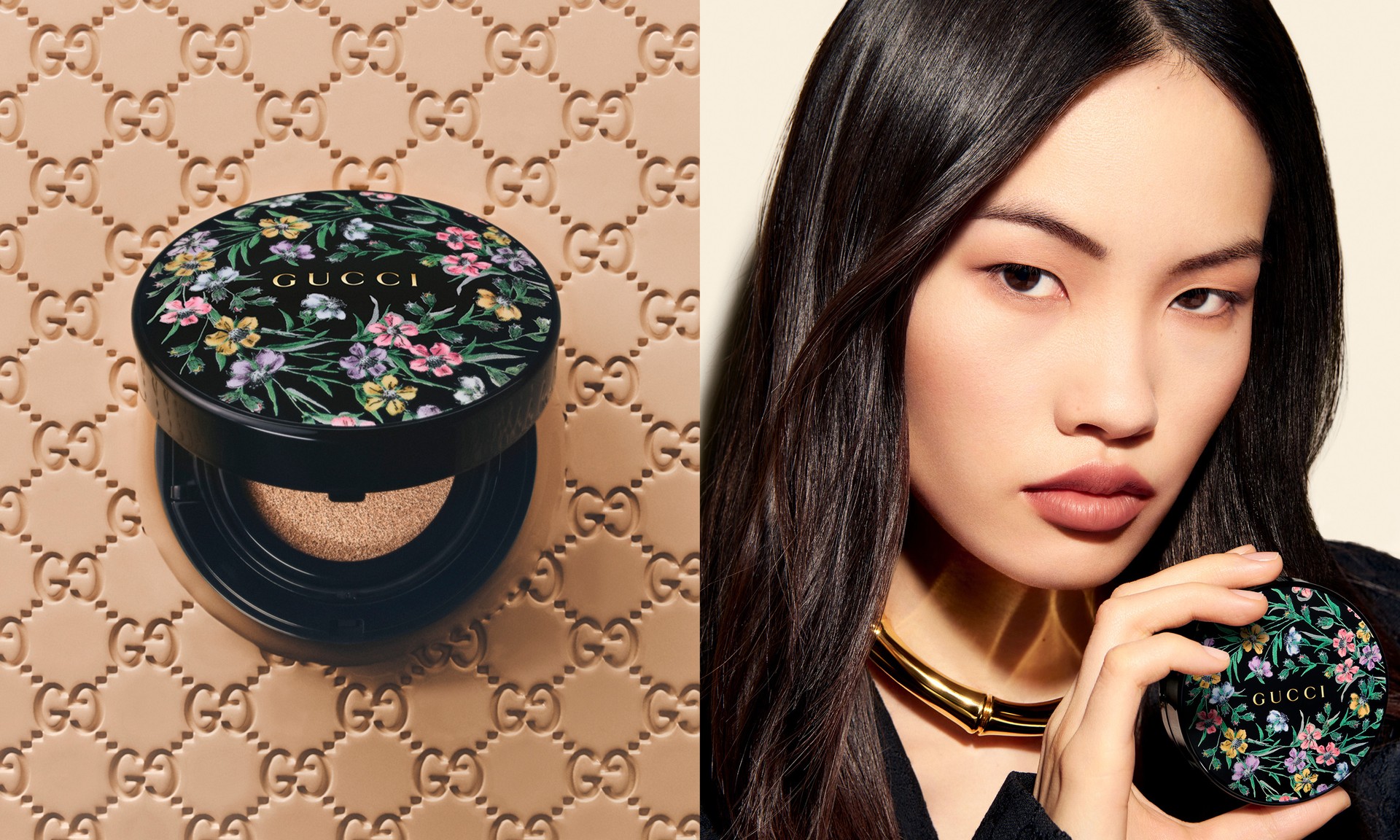Gucci Beauty expands its Éternité de Beauté line with a matte cushion foundation designed for heat, humidity and long days. The formula delivers full, blurred coverage in a single press while maintaining a lightweight, second-skin feel. With SPF 35 and a skincare-infused base featuring hyaluronic acid and bamboo powder, it balances hydration with shine control for a softly luminous matte finish – all housed in a refillable black compact adorned with a floral motif.