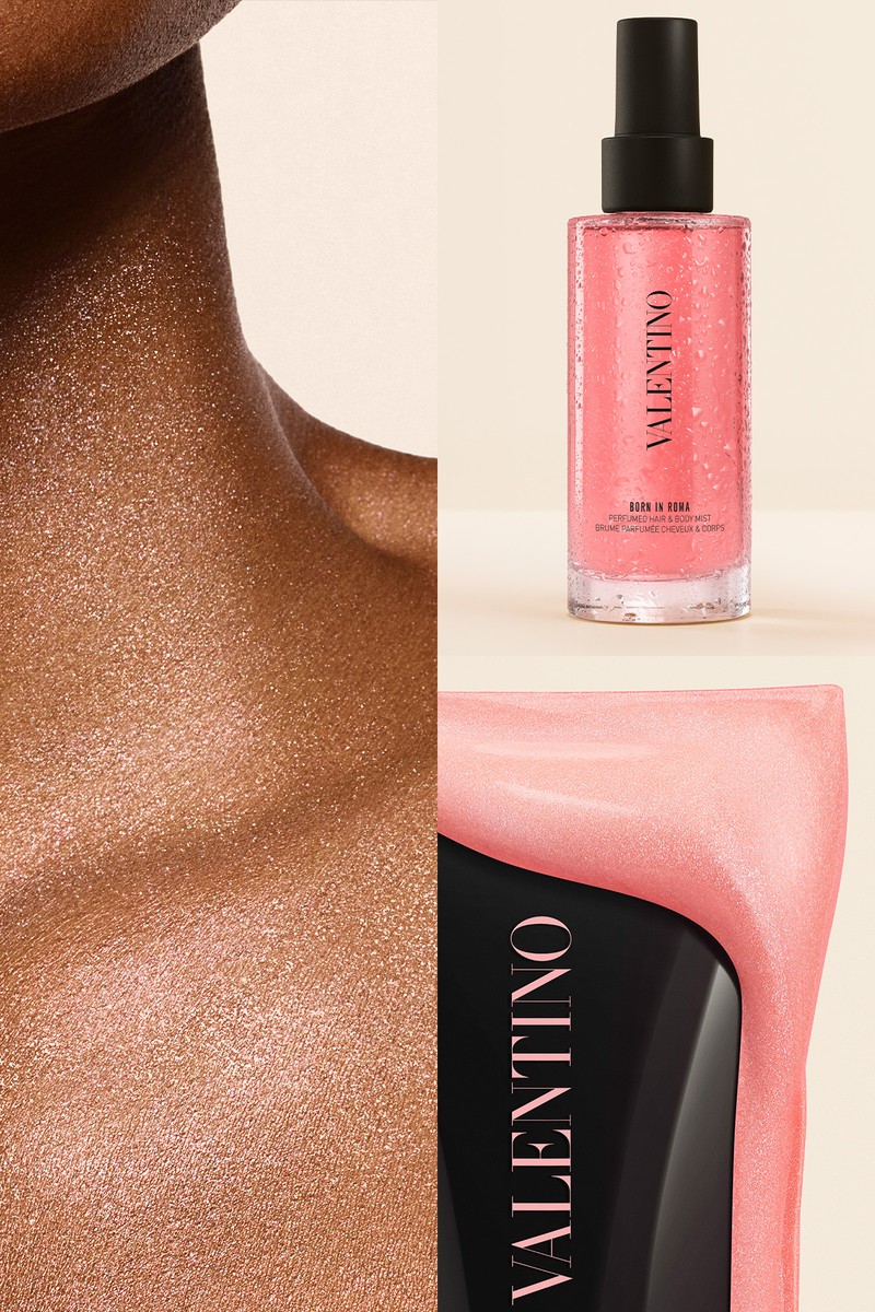 Valentino Beauty expands its iconic Born In Roma universe with a new hair and body collection, blending beauty, skincare, and fragrance in one luxurious ritual. The launch introduces two sensorial essentials – the Perfumed Body Shimmer, a radiant formula infused with hyaluronic acid and the RomaLight Complex for glowing skin and the Perfumed Hair & Body Mist, enriched with argan oil for silky, scented strands. Each product carries the signature Born In Roma ‘Donna’ scent, offering a bold and playful way to layer fragrance.