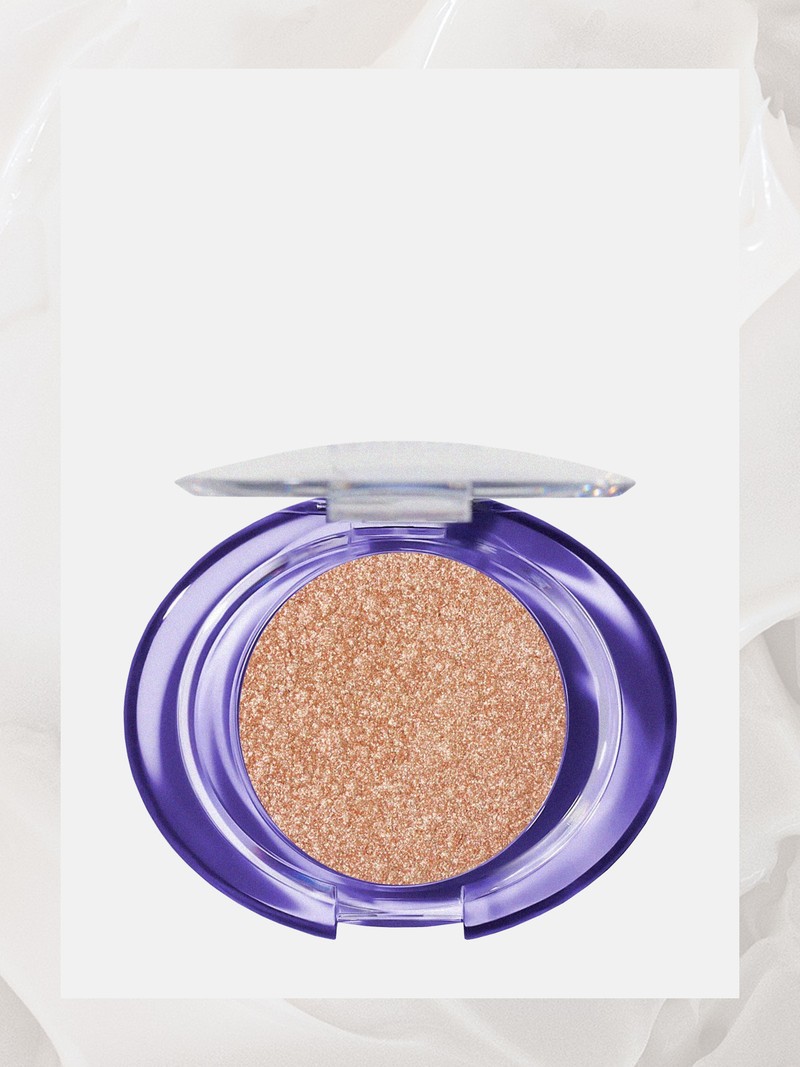This leans into that modern, glossy highlight rather than anything glittery. It catches the light in a soft, diffused way, enhancing high points of the face without emphasising texture – giving skin a smooth, luminous finish.