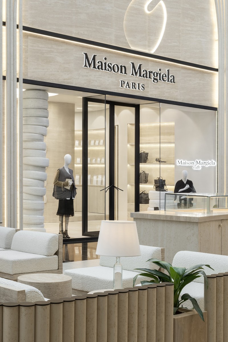 Maison Margiela’s new Dubai boutique at Mall of the Emirates is more than a fashion destination — it’s an experience. Spanning 265 square metres, the space blends Margiela’s signature deconstructed aesthetic – curved travertine walls, a bold Tabi footprint façade and meticulously curated interiors – with the brand’s first-ever terrace café in the region, created in collaboration with AP&Co Hospitality. Alongside ready-to-wear, leather goods and accessories, the boutique marks its launch with an exclusive Snatched bag in Thyme.