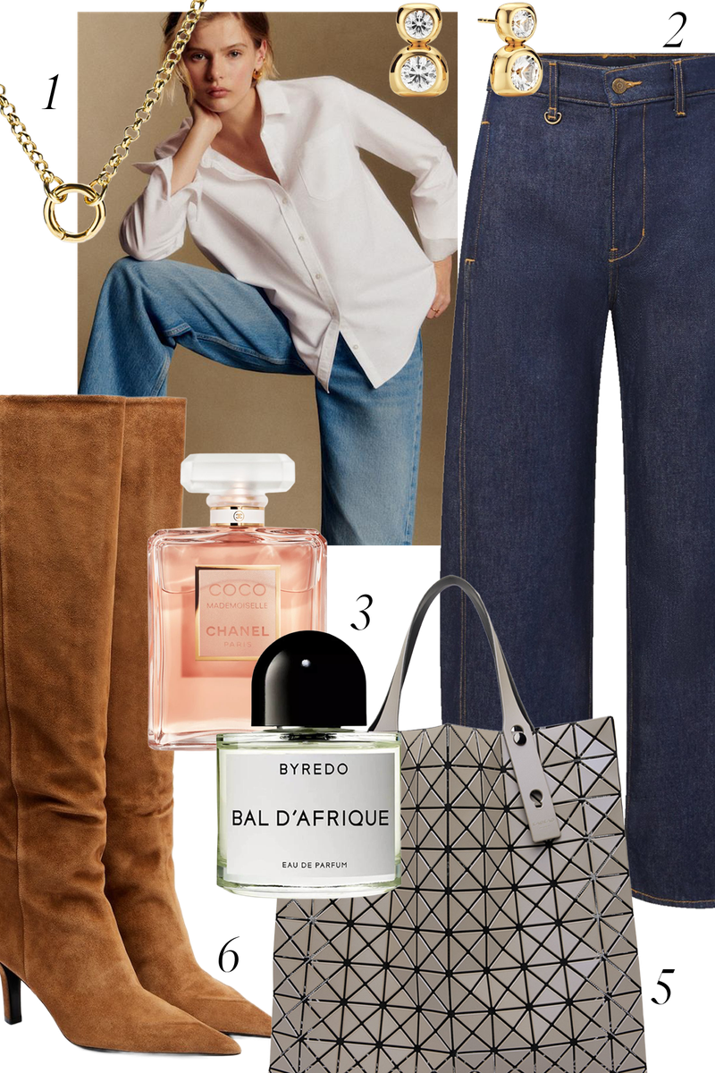I tend to keep things classic and understated. I love a crisp white button-down from Sézane paired with either dark denim or wide-leg trousers, and I’ll usually add a heel to keep the look feeling elevated. It’s timeless and always makes me feel put together. Lately, I’ve been leaning toward jewellery that elevates that simplicity; my Rolo Chain Charm Necklace, a bolder earring like the Ines Drop Studs or Stevie Hoops, and the Charlotte Stacker Bundle. They’re chic combinations I never have to think about, yet they instantly complete the look.