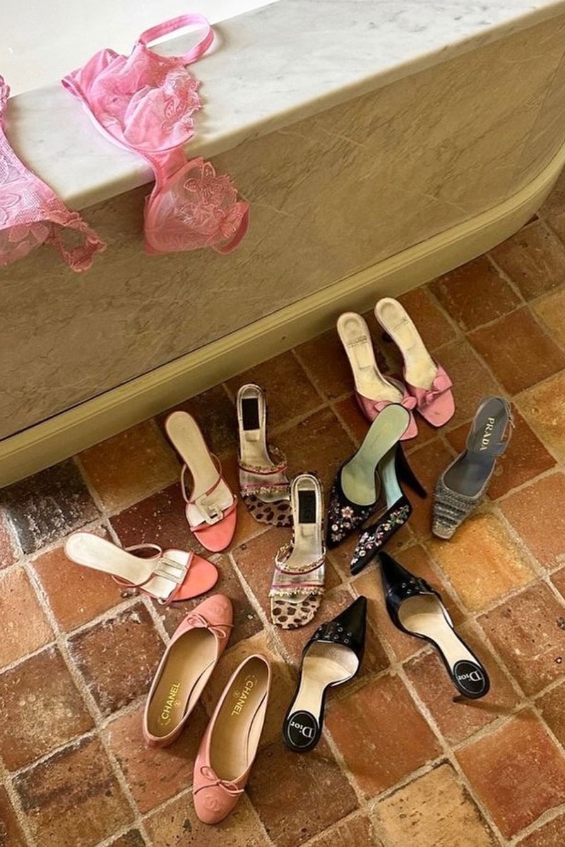 Add one standout detail. A pop-coloured heel is the easiest way to make an outfit feel more interesting. I love archival heels, tasselled styles and bright colours – they instantly make a look feel more fun. Brands like Andrea Wazen, Cult Gaia, René Caovilla, Giuseppe Zanotti and vintage Dior all do great statement heels.