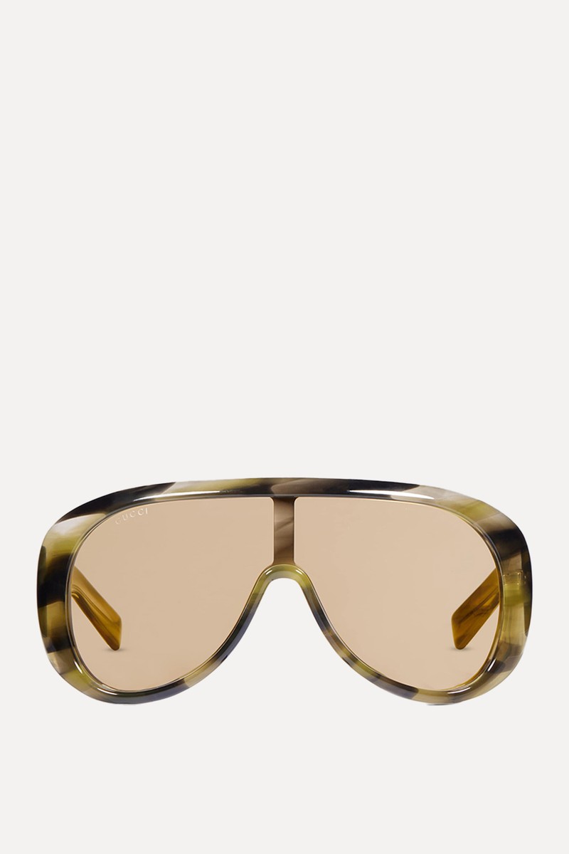 I’m currently loving rectangular-frame sunglasses from Gucci. They’re slightly retro and add instant attitude to even the simplest outfit.