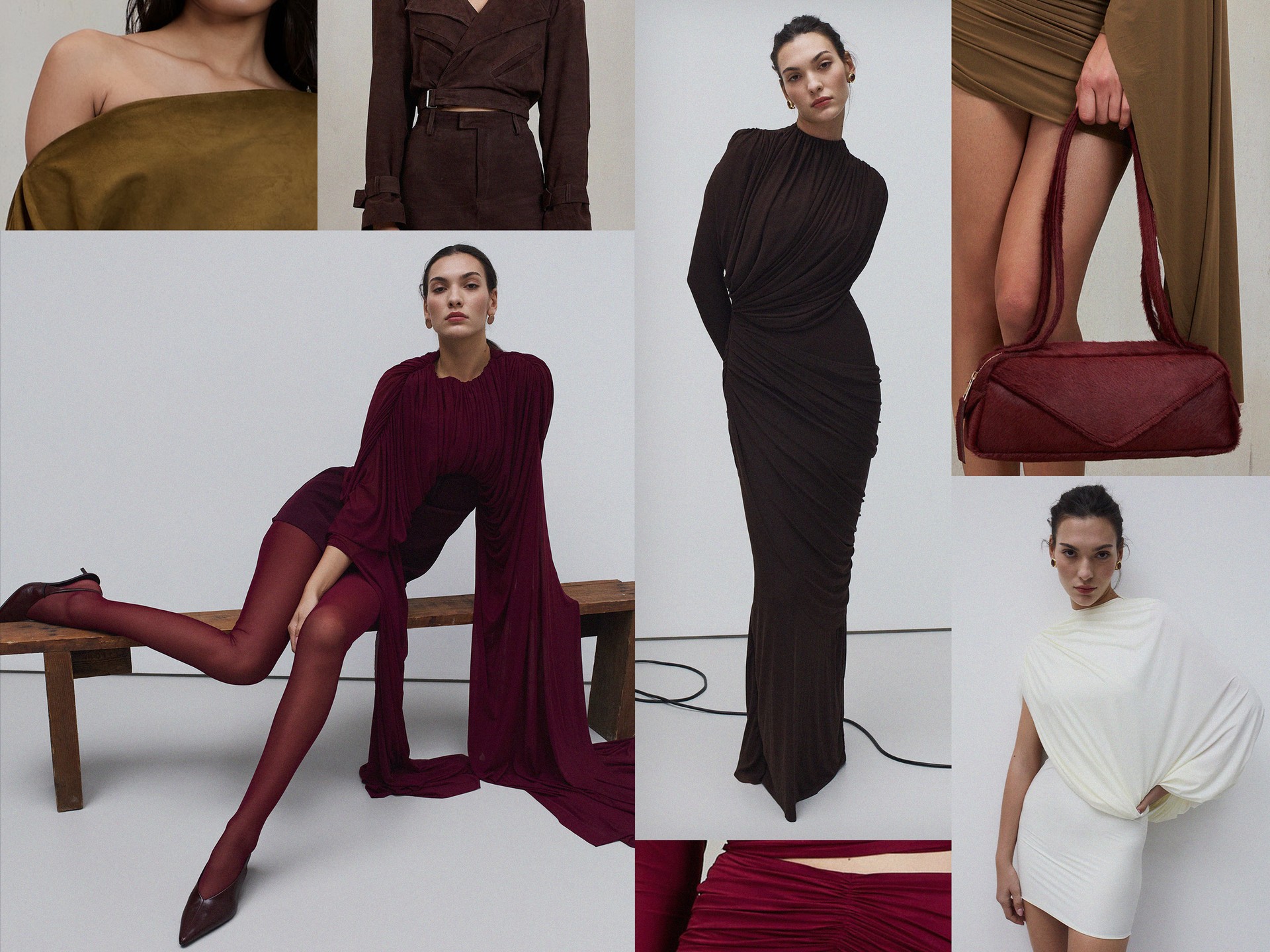 My design process always starts organically, usually with draping. I love seeing how a fabric falls, twists and behaves on the body. From there, I build out colour palettes, textures and ideas until a narrative emerges – and once I find that story, the collection starts to take shape. Draping is a core part of our visual language: fluidity, movement, sculptural lines. But ultimately, I design for the feeling.
