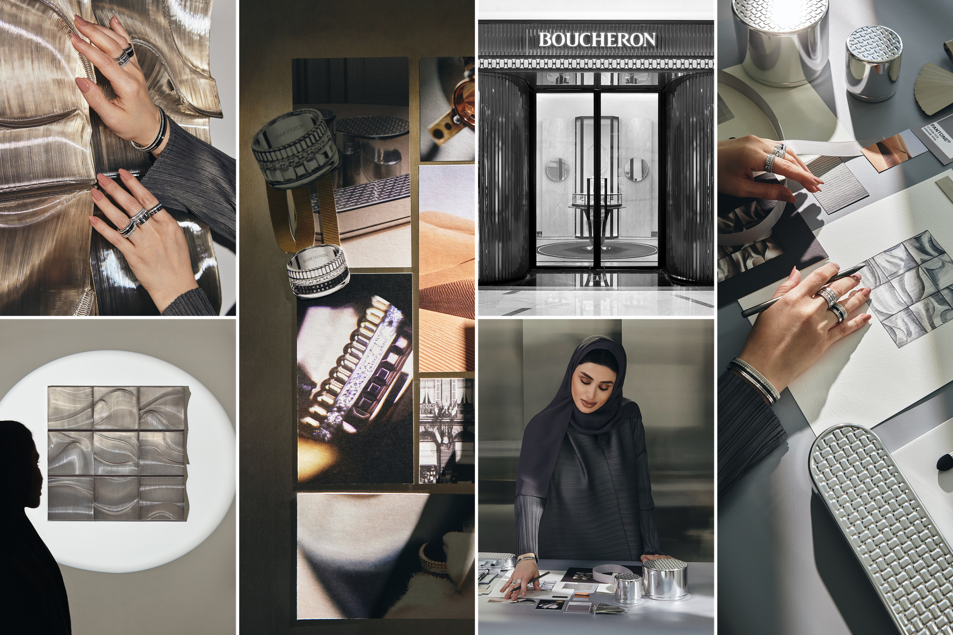 To celebrate the opening of its new boutique at The Galleria Mall Abu Dhabi, Boucheron has collaborated with Emirati artist Yasmin Al Mulla on an exclusive commissioned piece that captures the spirit of both the UAE and the jewellery house’s Parisian heritage. Inspired by the natural rhythm of dunes and waves, Yasmin’s artwork reflects the country’s sense of movement and progress, seamlessly intertwined with Boucheron’s iconic Grosgrain motif – a nod to its couture origins on Place Vendôme. The result is a poetic fusion of art, culture and craftsmanship that anchors the boutique’s elegant new design.