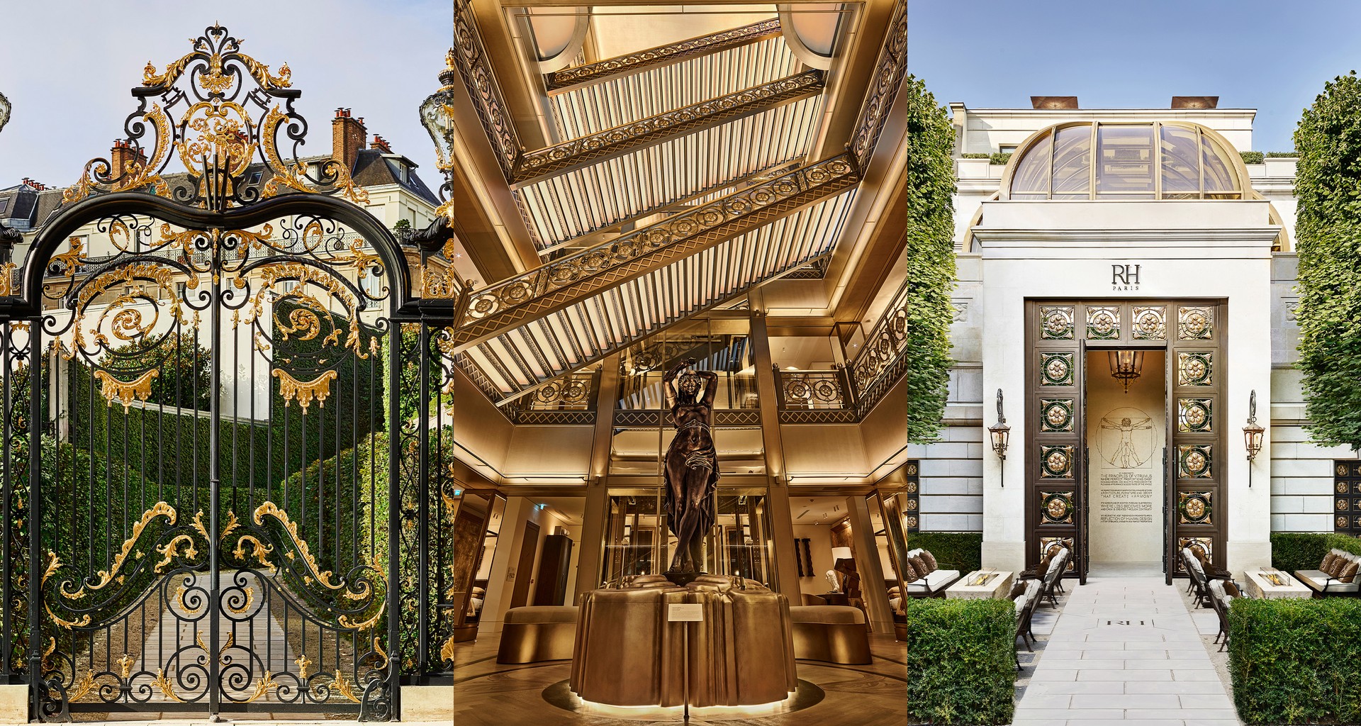 Located on the Champs Élysées in a landmark seven-storey building, RH Paris is more than a gallery. It combines design, dining and hospitality in a single immersive destination. RH Paris represents a new reason for tourists to add Paris to their itinerary, and for repeat travellers to experience the city in an entirely new way. The gallery is the brand’s first European outpost with a fully integrated hospitality concept, featuring not just showrooms but three standout dining venues. Le Petit RH has panoramic views of the Eiffel Tower and Grand Palais with its rooftop dining; Le Jardin RH serves American and Mediterranean classics under a glass and steel structure; while The World of RH Bar is the place for a cocktail by legendary bartender Colin Field.